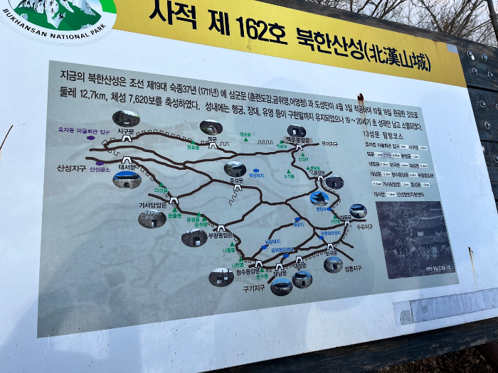 북한산 등산코스 모습입니다. 저희는 정릉지구(정릉탐방센터)에서 출발해서 보국문, 대성문, 태남문을 거쳐 문수봉까지 다녀왔습니다. 지도상으로는 꽤 짧아보이는데요 ㅋㅋㅋㅋ 짧다고 무시하면 큰 코다칩니다.. ㅋㅋㅋㅋ