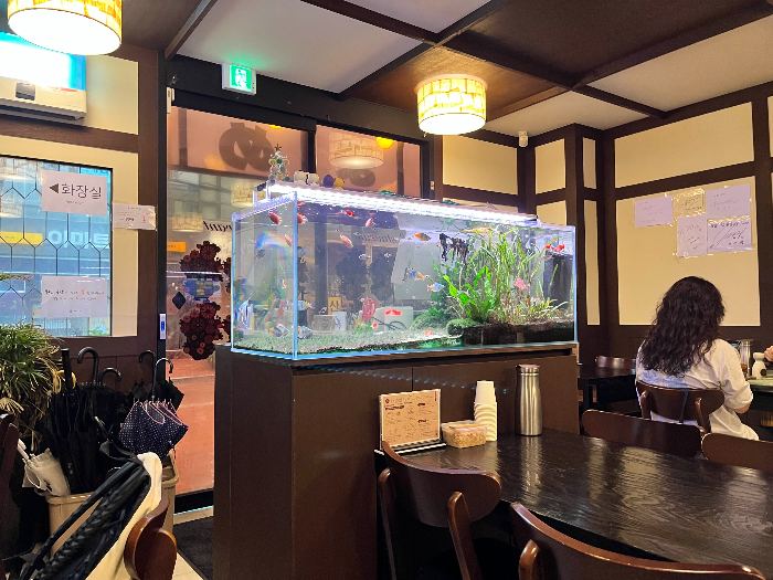 입구 바로 앞에 어항이 있어서 손님들이 계속 나가고 들어오는거에 좀 덜 신경 쓰게 되는 것 같아서 좋았어요.
